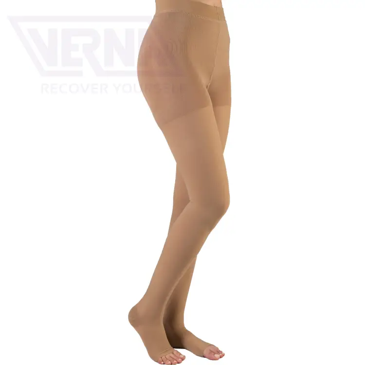 ورنا پلاس با فشار استاندارد کلاس 2 و 3، طراحی شلواری برای پوشش کامل پا و ران، و سیلیکون ضد سرخوردن، انتخابی مطمئن برای کسانی است که به دنبال بهبود جریان خون، کاهش خستگی و تورم پاها هستند.